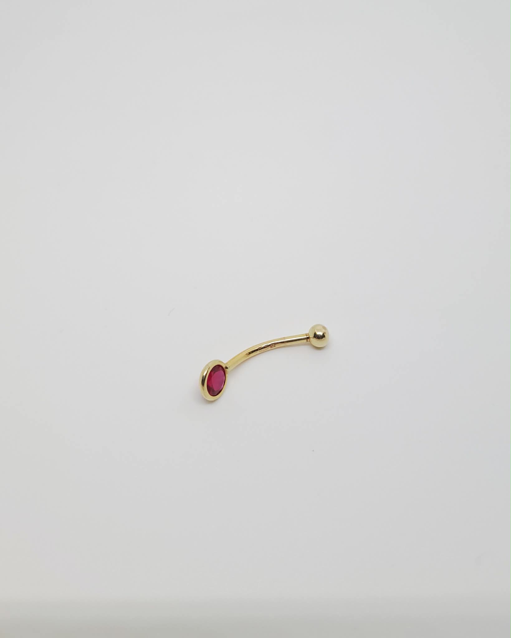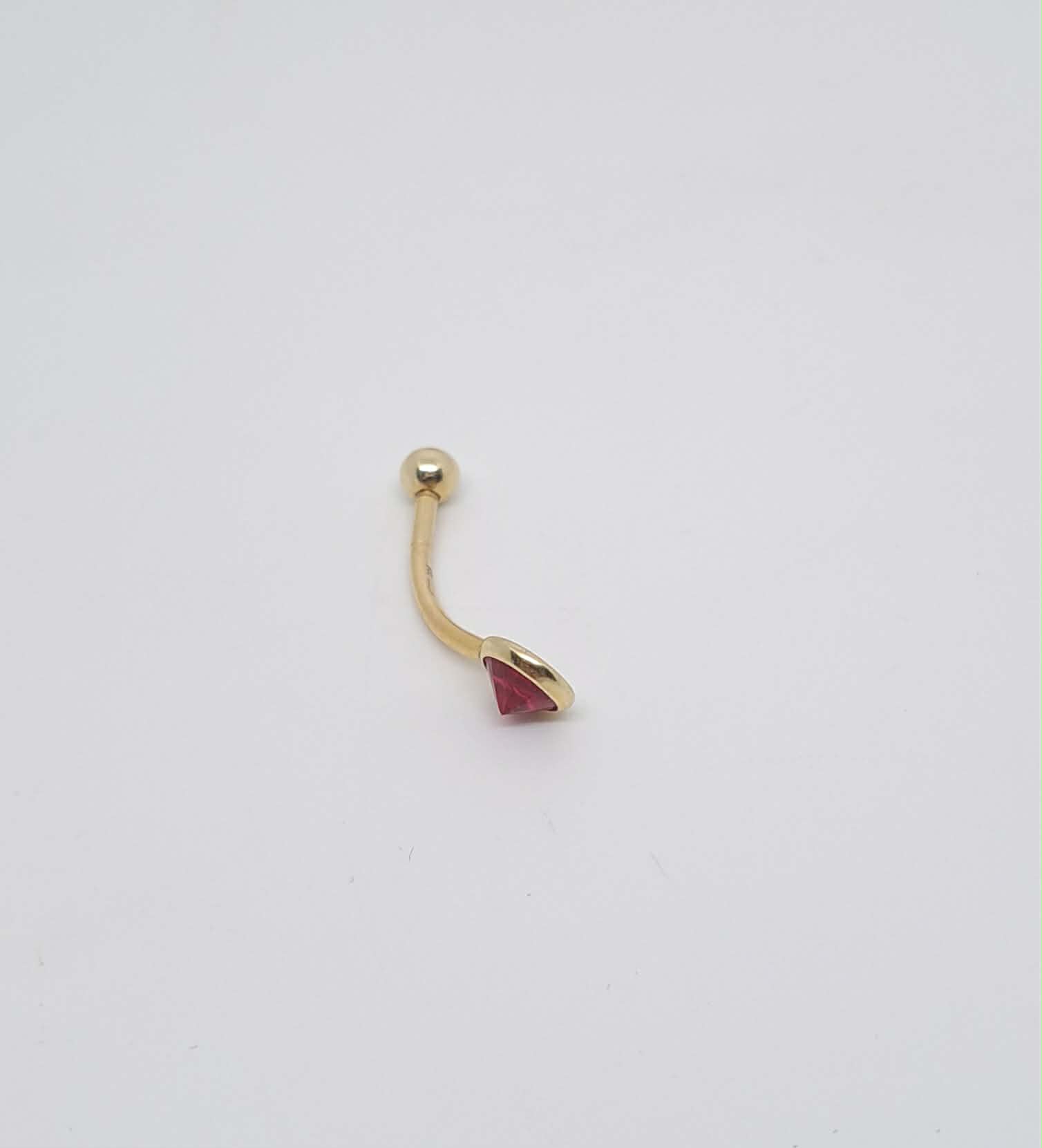 Õrn ja elegantne 585 prooviga kollasest kullast nabaneet roosaka-punase kiviga.