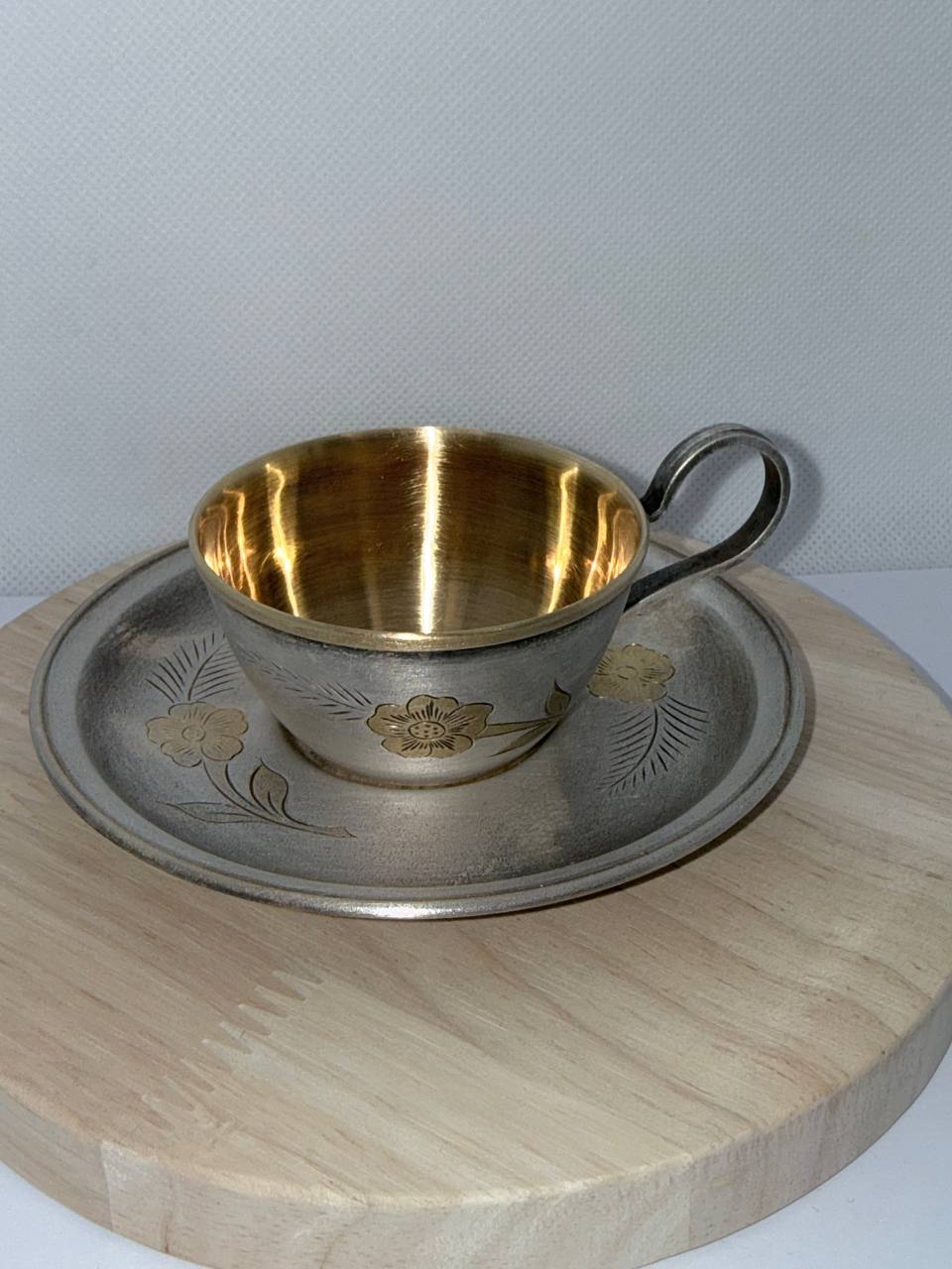 Hõbetatud melhior (ЮММЕТ): Üksik kohvitass koos alustassiga.