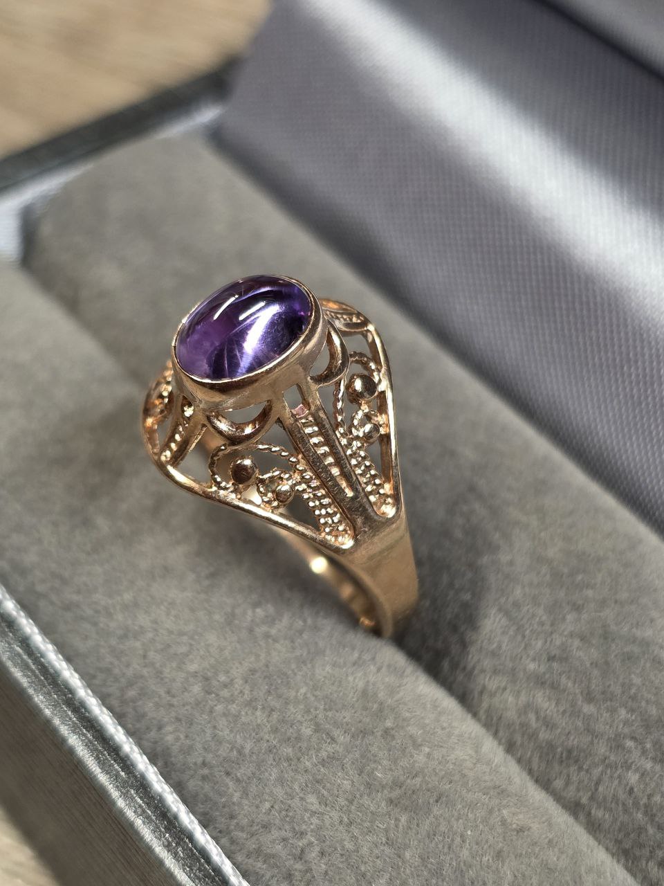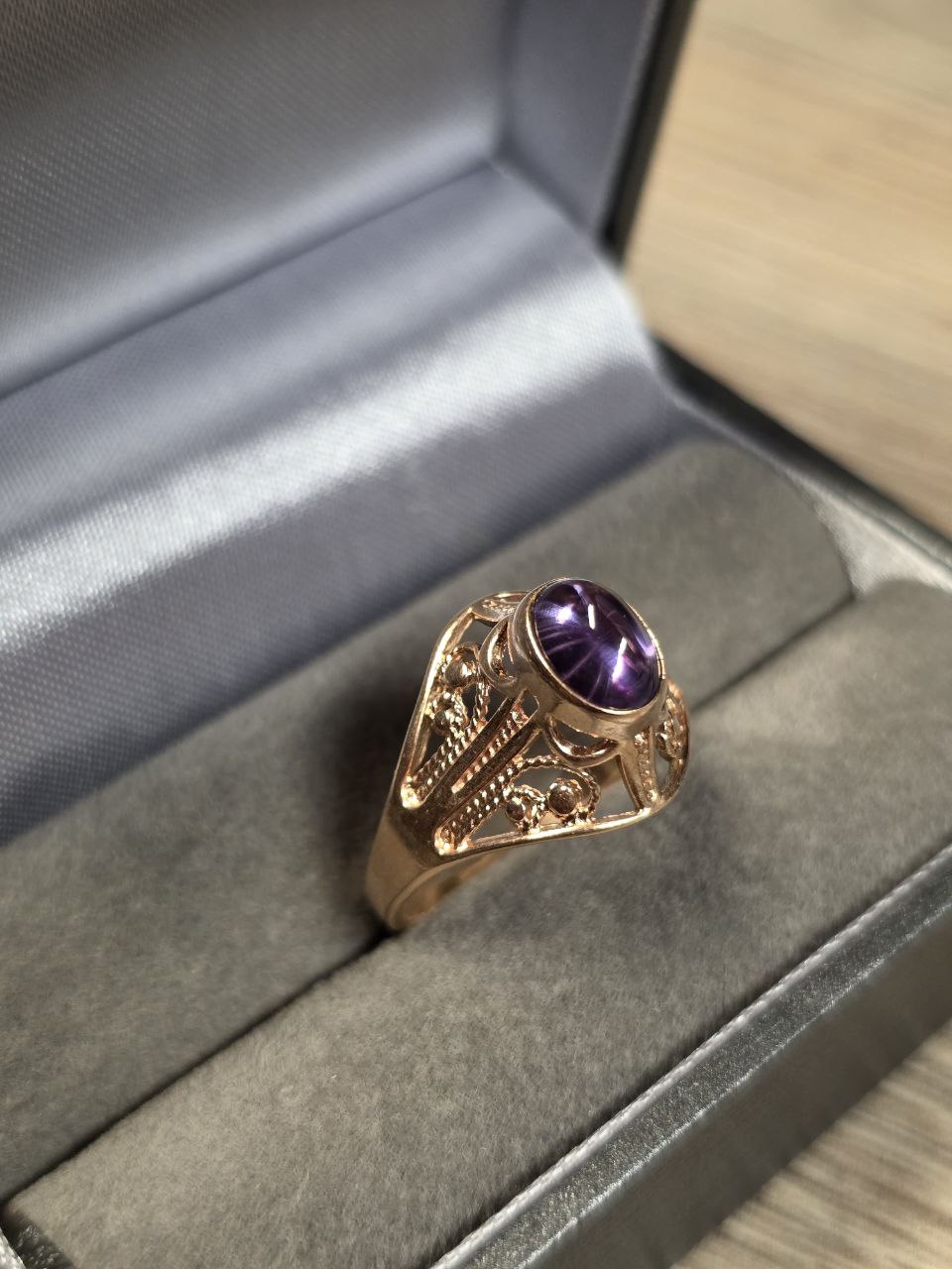 Kaunis kuldsõrmus-kivi värvus eri nurga alt varieeruv-lillast rohekani