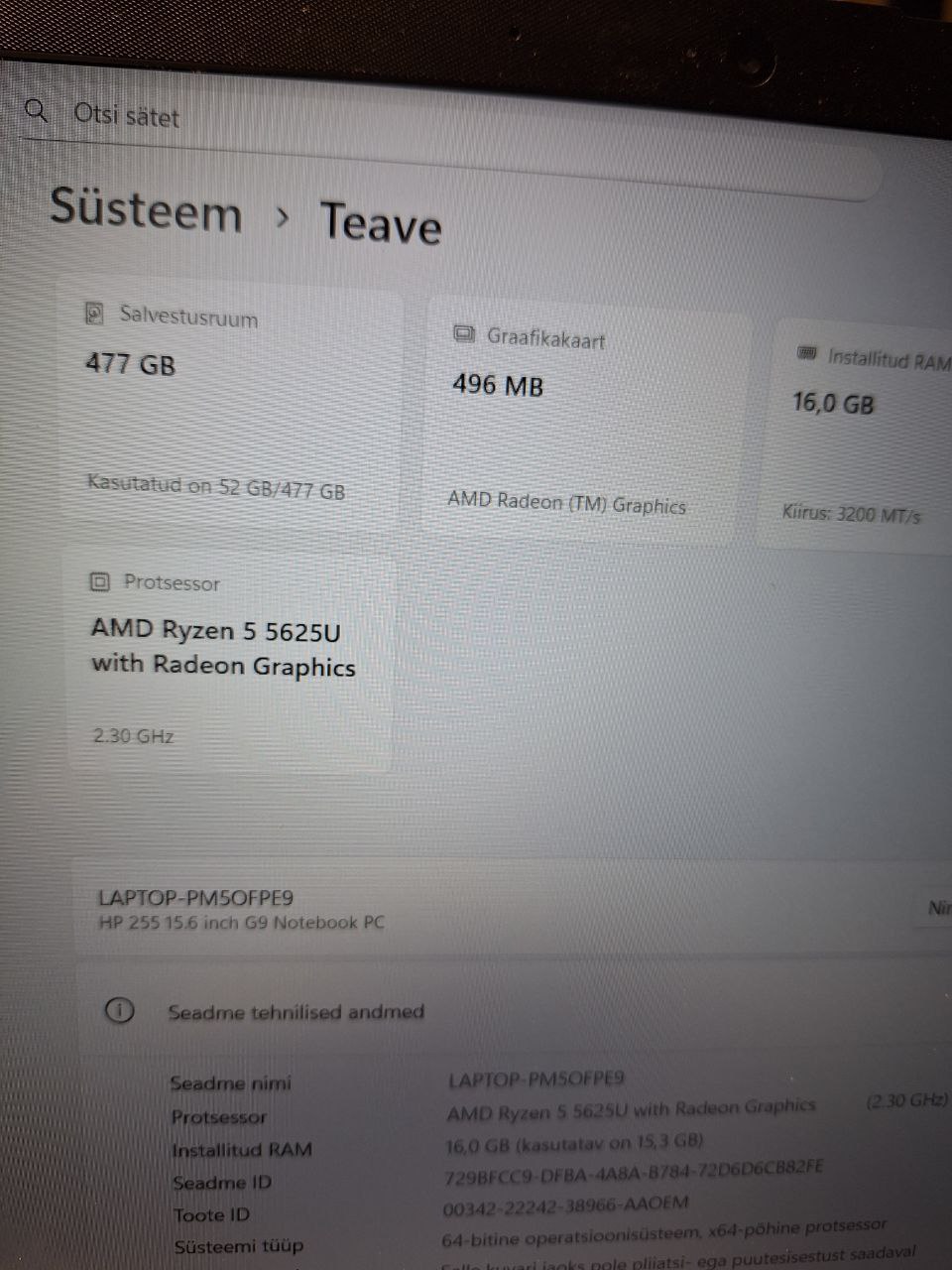 AMD Ryzen 5 5625U, 16GB RAM, Windows 11 Home, AMD Radeon graphics